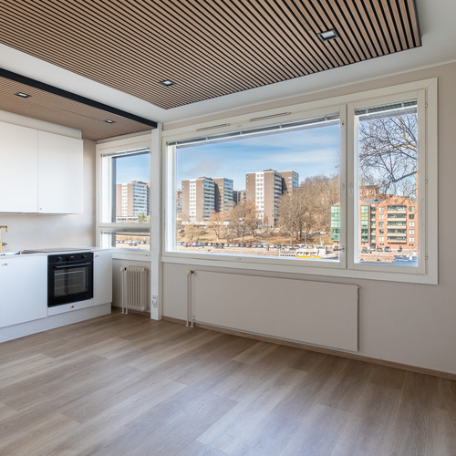 Suurilla ikkunoilla ja upeilla maisemilla varustettu juuri remontoitu yksiö kaupan. Asuntoon on rakennettu oma tila sängylle ja erotettu se muista oleskelutiloista. Asunnossa on panostettu laadukkaisiin ja kestäviin materiaaleihin. Asuntoon on saatu valtavasti säilytystilaa sängyn ympäri tulevine kaapistoineen, sekä tilajakajana toimivista kaapeista. Keittokomeron ja asuinhuoneen välinen seinä on kaadettu ja saatu avara yhtenäinen tila tehtyä. Taloyhtiö on hyvin hoidettu ja suuret remontit hoidettuna, viimeisimpänä julkisivusaneeraus. Mahdollista ostaa samasta yhtiöstä myös toinen vastaava huoneisto – kysy lisää välittäjältä!