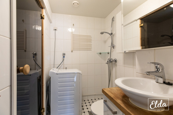 Varusteet: pesukoneliitäntä, lattialämmitys, wc-istuin, suihku, peilikaappi